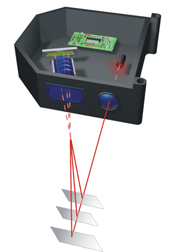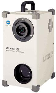 Der VI-900 digitalisiert Objekte durch ein Laser-Lichtschnittverfahren. Das vom Objekt reflektierte Licht wird von einer CCD-Flächenkamera erfasst, nach Ermittlung der Distanzwerte (Z-Achse) mittels Laser-Triangulation werden die 3D-Daten erstellt. Der Laserstrahl wird mit Hilfe eines hochpräzisen galvanischen Spiegels über das Objekt projiziert, pro Scan werden 640 x 480 Einzelpunkte erfasst.(8)
