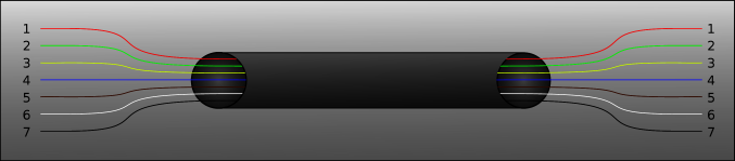 Dafür wurde in der Werkstatt des RheinAhrCampus Remagen ein 7 adriges Kabel (siehe Abbildung 4.2) besorgt und die passenden Endstecker bestellt. Die Belegung wurde gleich zum Kabel für den ersten Schrittmotor gewählt, jedoch um die 3 Adern für die beiden Endschalter erweitert. Tabelle 5.1 gibt die Belegung des Kabels wieder.