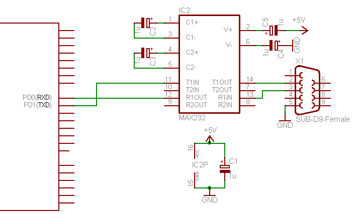 Dadurch ist es möglich mit dem Mikrocontroller über zwei RS-232-Schnittstellen gleichzeitig zu kommunizieren.