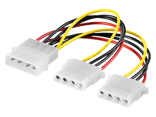 Die festen Lötverbindungen am Einschub für die Schrittmotorkarte wurden durch Standard PC-Netzteil Stecker ersetzt. Die Logikbausteine der Schrittmotorkarte werden mit 5V gespeist. Die Schrittmotorkarte wird zusätzlich mit 12V für den Schrittmotor gespeist. Der Stecker lässt sich nun einfach mit einer Buchse des Standard PC-Netzteils verbinden und es ist nicht mehr Notwendig zu löten wenn das Netzteil ausgebaut wird. Mittels eines Y-Kabels(siehe Abbildung 4.1) können nun leicht weitere Buchsen hinzugefügt werden.